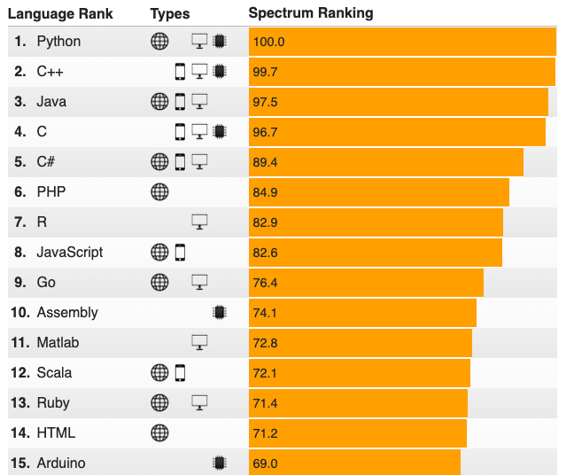 Dünyanın en meşhur 10 programlama dili sırası ile şu şekilde: