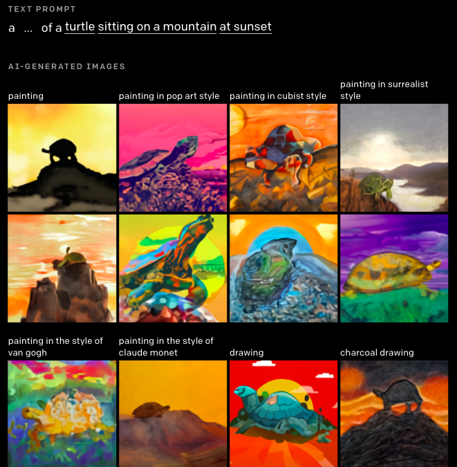 Özellikle ben ormanda, güneşin batışında bir kaplumbağa istedim. Karşıma gelen görseller hiçbir yerde bulamayacağım tamamen özgün, kendi yorumlarıyla çizimler yaratıyor. Sonsuz sayıda olasılık geliştiriyor, betimlemelerde sizin ne istediğiniz ya da ufak bir farklılık sonucu değiştiriyor. Evet kabul ediyorum hepsi şaheser değil yada Picasso vari benzetebilmek için uzun süre incelemek gerekiyor 🙂 Ancak ben çok etkilendim doğrusu…
