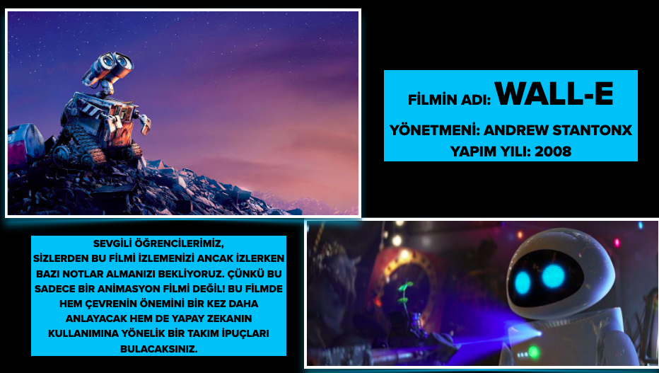 NOT: İsteyen öğretmen arkadaşlarla hazırladığım Wall-E filmi ile ilgili posterleri paylaşabilirim 😉